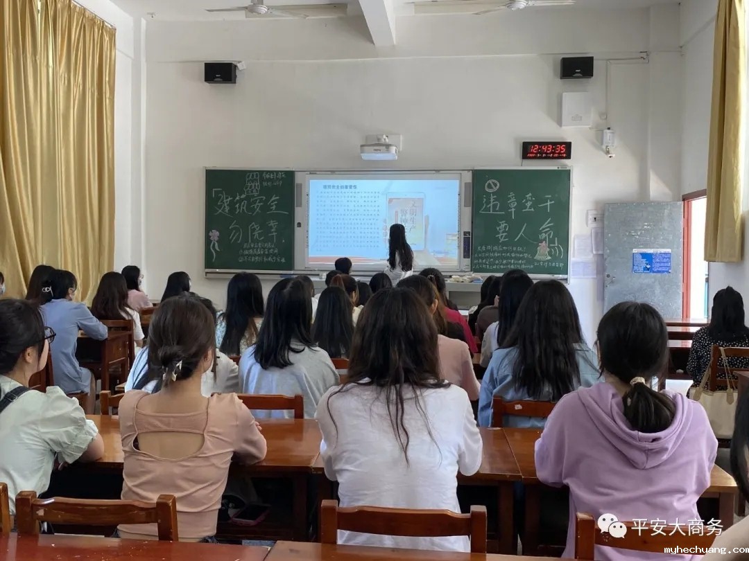 5月3日会计学院开展“建筑安全勿侥幸,违章蛮⼲要⼈命”主题班会,去达到一个警示同学们的作用,希望大家远离那些楼层较高的建筑。