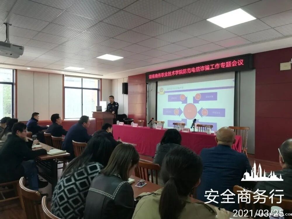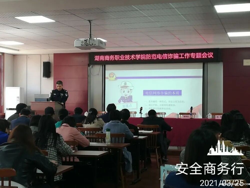 3月25日我校特邀请岳麓公安分局副所长黄闽来我校为辅导员老师开展宣传防电信诈骗安全知识讲座。