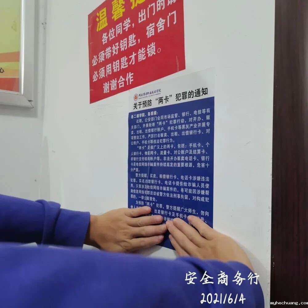 3.在每一栋的宿舍门口以及每一栋的每一个楼层张贴好关于预防“两卡”犯罪的通知。