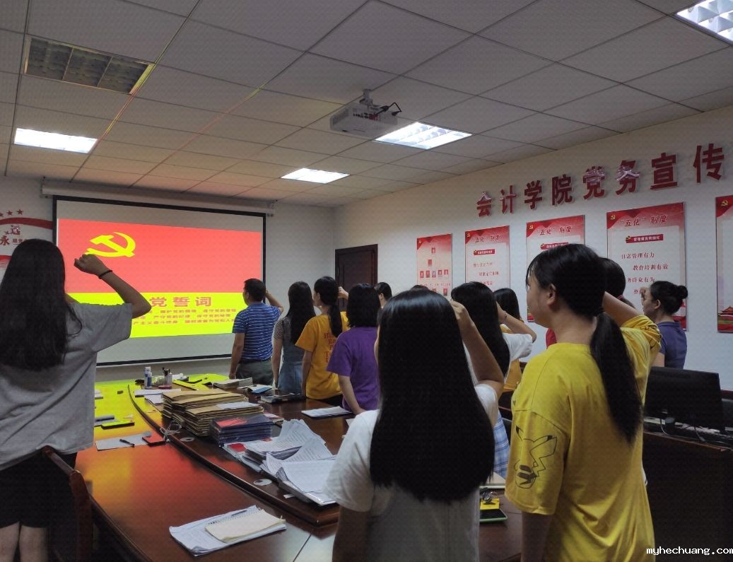 一、由朱泳霖书记带领会计学工一党支部全体成员重温入党誓词,提醒同志们不忘初心,牢记使命,永远奋斗。他谈到,今天是一个伟大的日子,我们党从当初的50多人,到现在的9千多万人,我们党在不断的发展,不断的壮大,强大起来了,这个征程经历了千辛万苦,也涌现了许许多多可歌可泣,前赴后继的英雄人物。