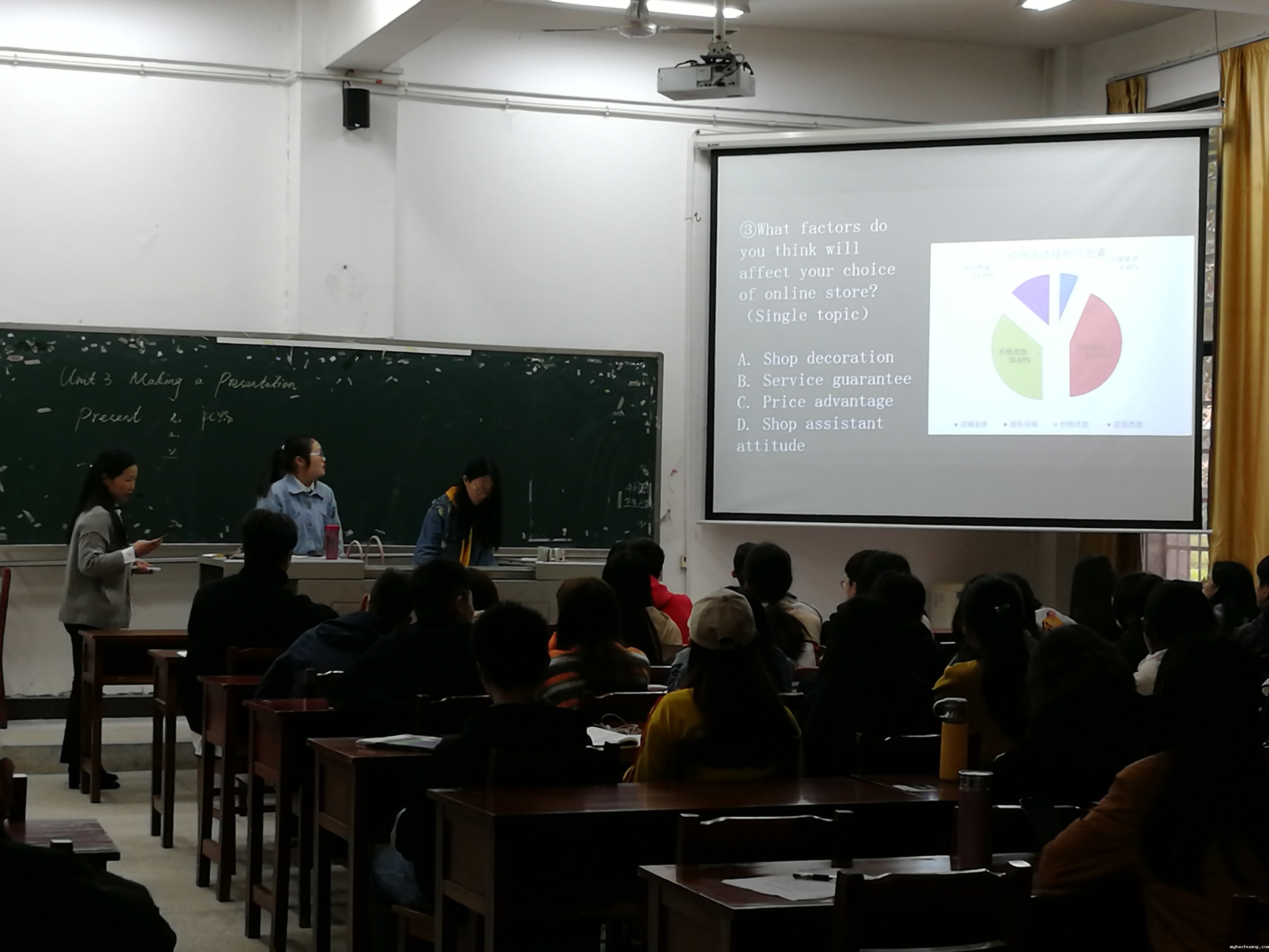张莲老师讲授《大学英语(二)》课程的Unit 5 “Selling a Product or Service”,张老师通过每日金句赠言的方式对单词present不同词性的意义进行讲解,自然而然地引入了课程主题学习:Making an effective presentation。教学手段丰富多样,充分体现了英语课堂以学生为主导的教学理念,激发了学生的学习兴趣,课堂效果好。