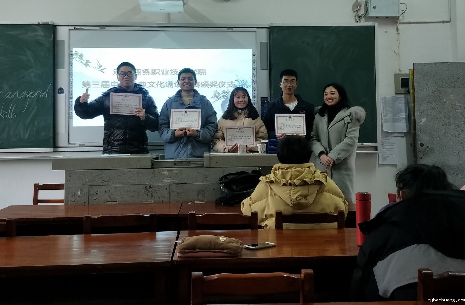 对获得一、二、三等奖同学分别奖励300、200、100元,并颁发荣誉证书。希望获奖者珍惜荣誉,再接再厉,在今后的学习工作中不断取得新成绩;广大同学向获奖者学习,积极发扬和传承中华优秀传统文化,争做弘扬民族精神的优秀大学生。