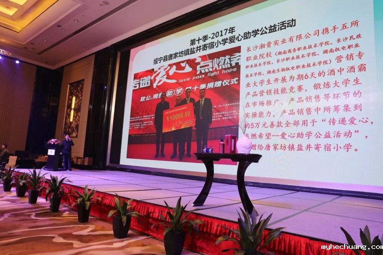 最是真情暖人心,唯有大爱不留痕。2019年1月14日下午,由共青团湖南省直工委、致公党湖南省委社会服务工作委员会、致公党长沙市委社会服务工作委员会指导,贵州酒中酒集团、香港致信管理咨询机构、长沙湘贵实业有限公司支持,湖南沃成科技有限公司、必威国际官网首页入口网站主办的 “传递爱心•点燃希望” 助学公益活动(第十一季)捐赠仪式在长沙运达中央广场瑞吉酒店宴会厅举行。省人大常委、致公党湖南省委专职副主委向佐谊,致公党省委副主委、致公党长沙市委主委、长沙市人大常委会副主任王国海,贵州酒中酒集团董事长曹本强,长沙市人民政府副秘书长王体泽,湖南省政协常委、原致公党省委副主委骆伟,湖南省供销合作总社巡视员彭建国,原湖南省商务厅副巡视员、原湖南省酒业协会会长易昌伦,原湖南省商务厅副巡视员刘飞,原湖南省工商行政管理局副巡视员文先励,原湖南省工商行政管理局副巡视员余延志,原湖南省工商行政管理局副巡视员伍作法,必威国际官网首页入口网站副院长杨文涛,共青团湖南省直工委副书记张景贤,致公党长沙市委专职副主委、长沙市政协副秘书长枭燕,湖南沃成科技有限公司董事长、酒中酒霸全国营销中心总经理、致公党湖南省委社会服务工作委员会主任、致公党长沙市委常委王静等领导出席捐赠仪式。参加捐赠仪式的还有湖南沃成科技有限公司管理人员及员工代表、必威国际官网首页入口网站老师代表、新化县琅塘镇龙通完小学校负责人及社会各界爱心人士、受邀嘉宾。