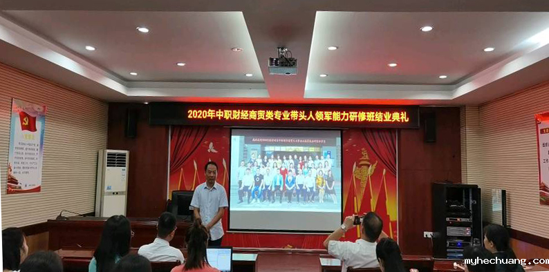 8月1日下午,“国培计划”(2020)——中职财经商贸类专业带头人领军能力研修班结业典礼在我校举行,标志着由我校承办的第四期国培项目培训班顺利结业。经济贸易学院副院长(主持工作)陈学忠教授、教务处副处长张丽莉、国培班主任王娜玲老师与30位培训学员参加,经济贸易学院党总支书记谢虎军主持了结业典礼。