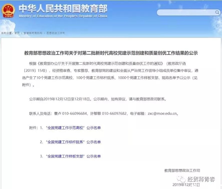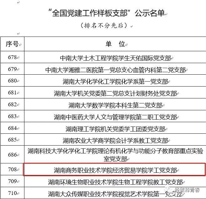 三湘都市报12月20日讯(通讯员 杨路平 记者 杨斯涵 黄京)日前,第二批新时代高校党建示范创建和质量创优工作结果出炉,湖南商务职院经贸学院学工党支部成功入选教育部“全国党建工作样板支部”。