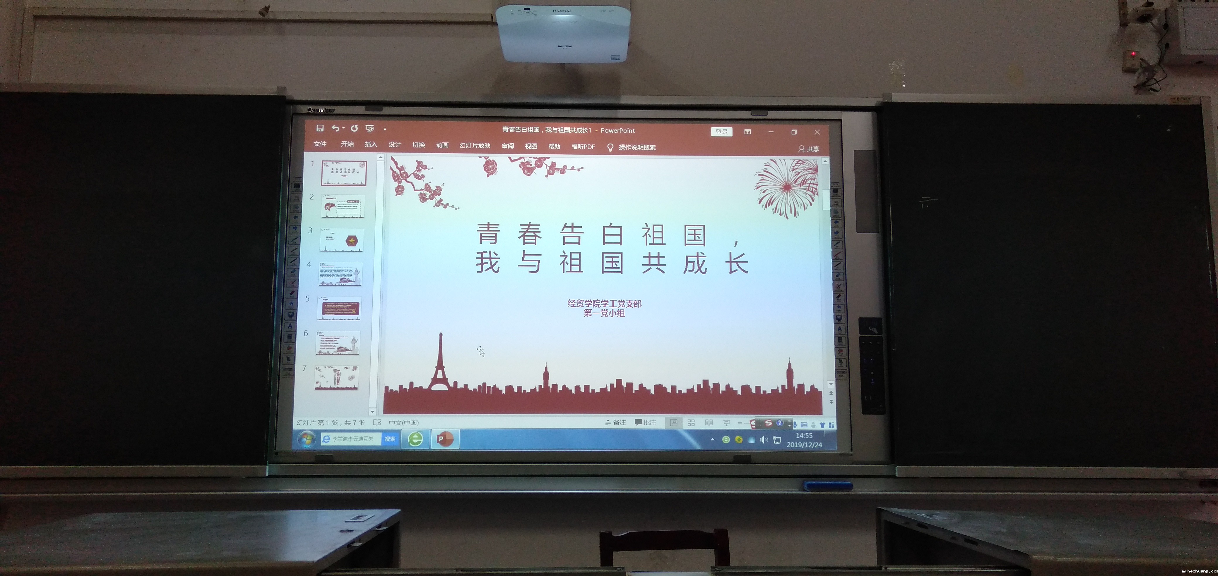 (通讯员:颜婷婷)2019年12月24日15:00,经济贸易学院学工党支部组织全体党员在二教102教室开展“青春告白祖国,我与祖国共成长”主题党日活动。