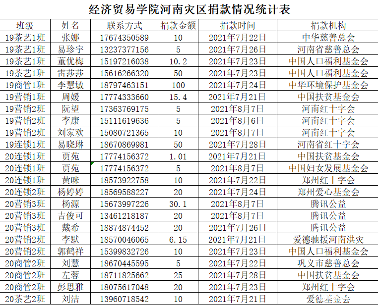 (通讯员 谢雨)从7月17日一直到22日,大规模的降水在河南省持续了5天。此次暴雨给河南带来了巨大损害,危难时刻,无数普通人挺身而出,从线上到线下,民间互助发挥了举足轻重的作用,中国人民又一次展示了一方有难,八方支援的互助精神。必威国际官网首页入口网站经济贸易学院的芊芊学子秉着守望相助、携手共渡难关的精神,也为支援河南献出了自己的一份心意。