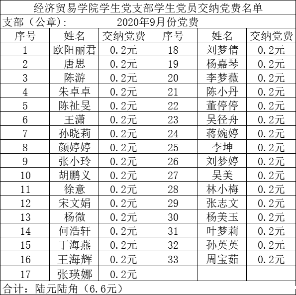 (通讯员 周自立)习近平总书记强调“党性教育是共产党人修身养性的必修课”。为上好这堂必修课,增强党员的党性修养。2020年9月1日,经济贸易学院学工党支部以线上收缴的形式组织开展第九期“主动交纳党费,做合格党员”主题活动。此次活动由经济贸易学院学工党支部全体党员参加。