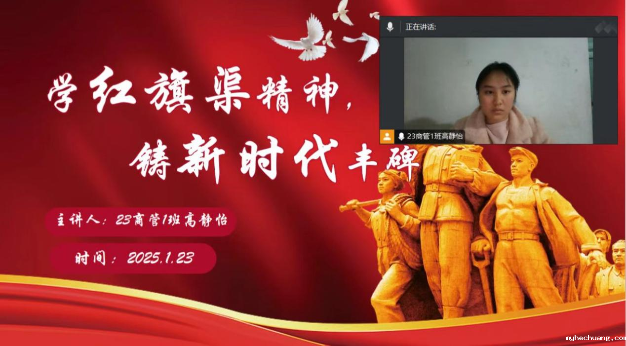 (通讯员 晏艳阳)为深刻学习红旗渠精神的内核和时代价值,进一步加强青年学生思想引领,2025年1月23日晚7时,经济贸易学院学工党支部组织开展“学红旗渠精神,铸新时代丰碑”线上主题党日活动,此次活动由23级商务管理1班高静怡主持,经济贸易学院学工党支部全体党员、入党积极分子参与此次活动。