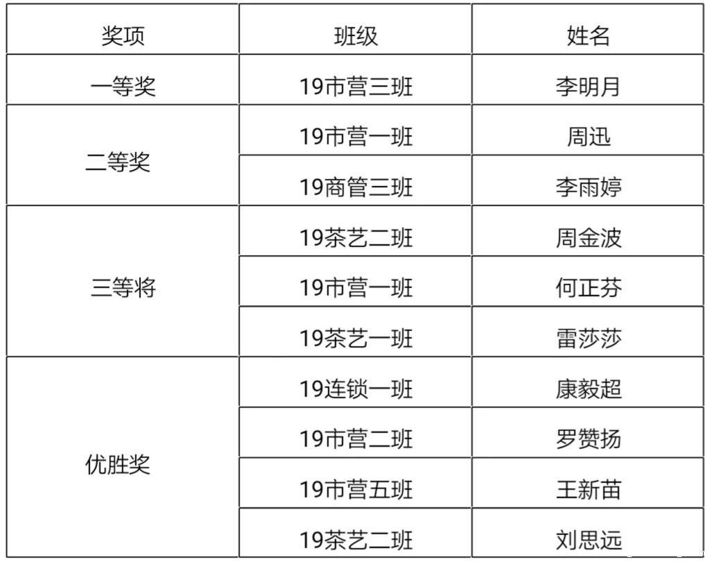 经过评委的评分,最后得奖的同学是: