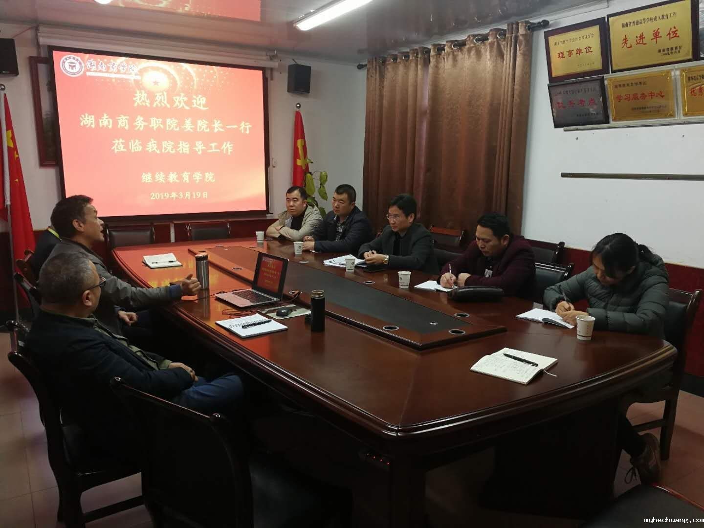 2019年3月19日上午,我校继续教育学院负责人与业务人员一行5人前往湖南商学院继续教育学院,就成人教育、社会培训和自学考试等相关工作进行学习交流,受到了该院院领导的热情接待。