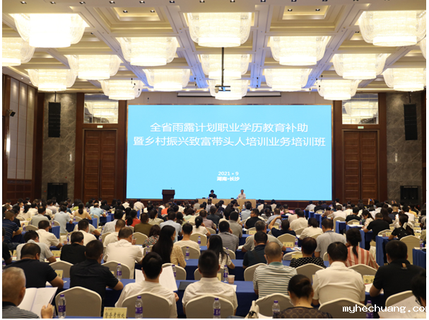 (通讯员 谷永林)2021年9月16日由湖南省乡村振兴局主办的雨露计划职业学历教育补助暨乡村振兴致富带头人业务培训班在长沙湖南宾馆开班。来自全省各市州、县市区乡村振兴局分管负责人、业务骨干等共计340余人参加培训。我院作为中标培训基地之一,学院院长李定珍、党委委员刘谦、继续教育学院院长陈斌、继续教育学院副院长石元珍参加了此次培训班。