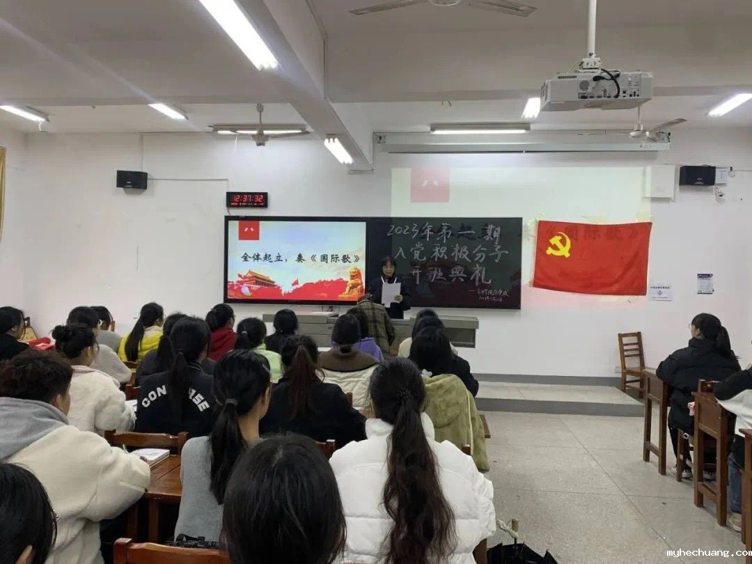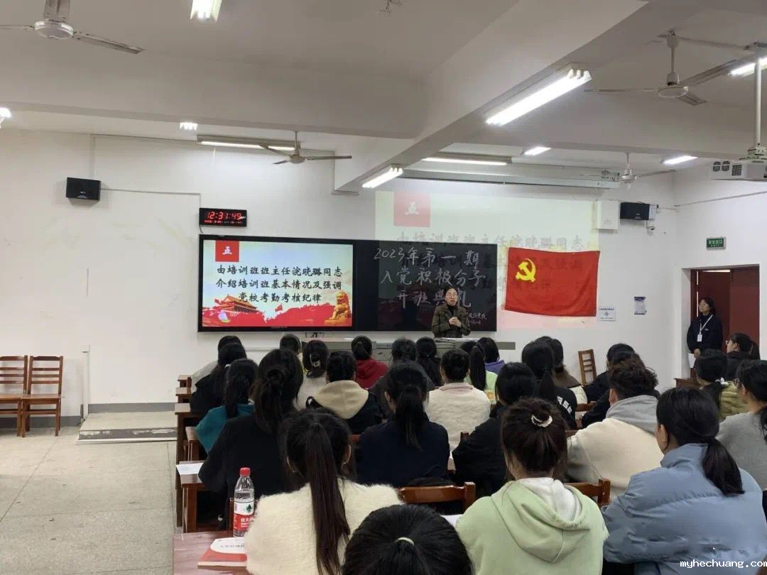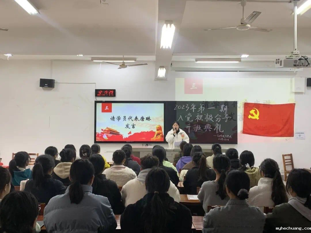 3月20日12:10,会计学院2023年第一期入党积极分子培训班开班典礼在J2-301举行。21会计12班李思旗担任主持人。