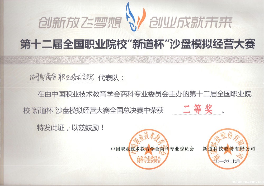 会计学院学生荣获2016年第十二届全国职业院校“新道杯”沙盘模拟经营大赛全国总决赛二等奖