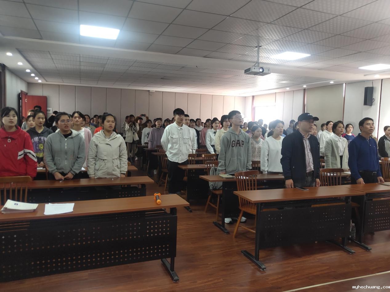 典礼第一项:全体老师同学起立,奏唱国歌