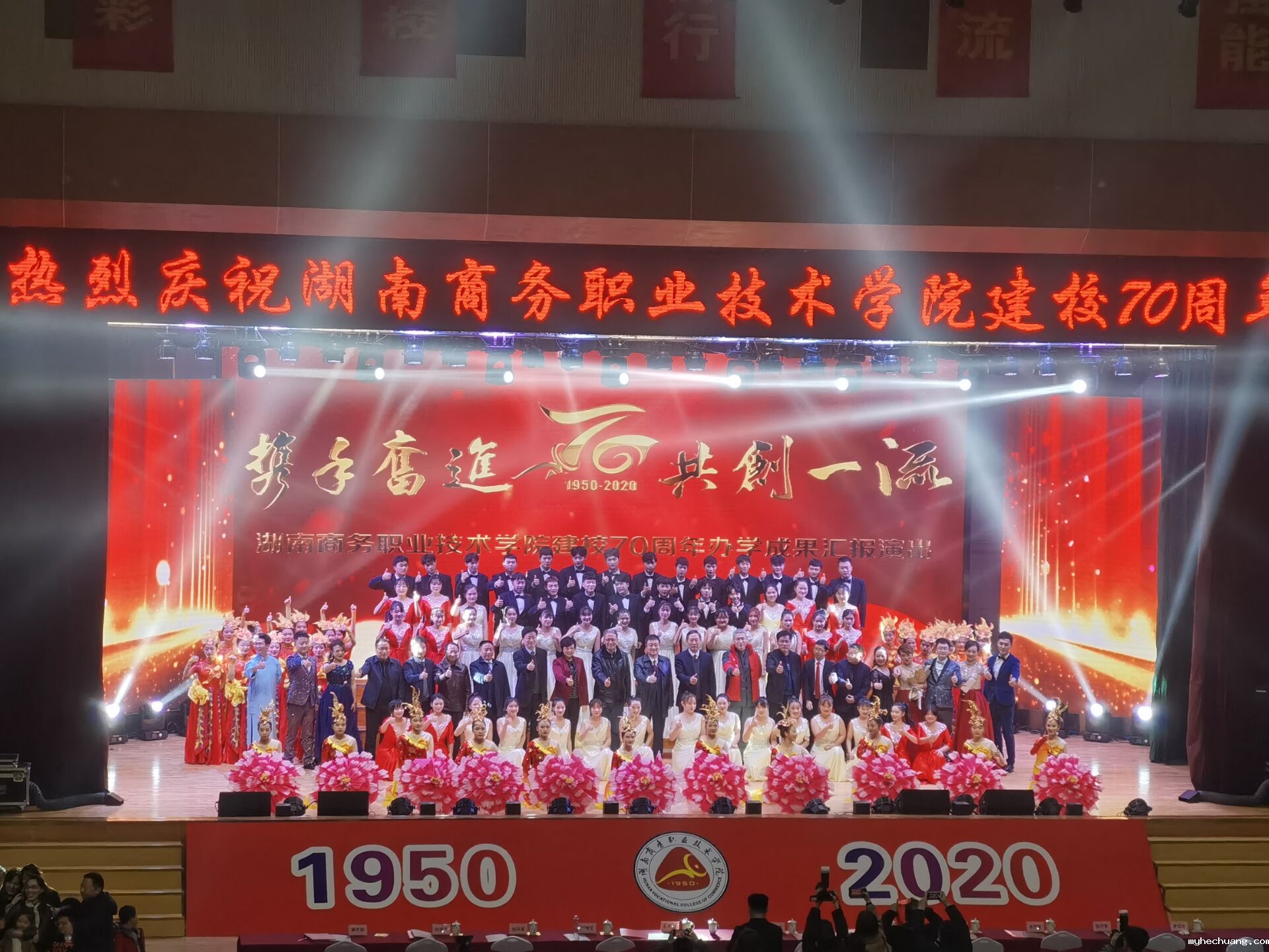 在领导老师慷慨激昂的致辞后,精彩绝伦的视听盛宴也随之开始 。开场表演龙腾舞狮将雄劲的醒狮与刚劲的武术联合,演绎出不息的火花。朗诵节目饱含着对母校的祝福,相声表演诙谐幽默,民乐合奏、歌曲联唱,将现场气氛推向高潮。各式各样的舞蹈演绎着身为商务人的欢悦,表达了对学校70岁生日的祝福,展现出了民族文化的独特魅力和学校深厚的文化底蕴 。最后晚会在合唱团演唱的《流金岁月》中进入尾声。