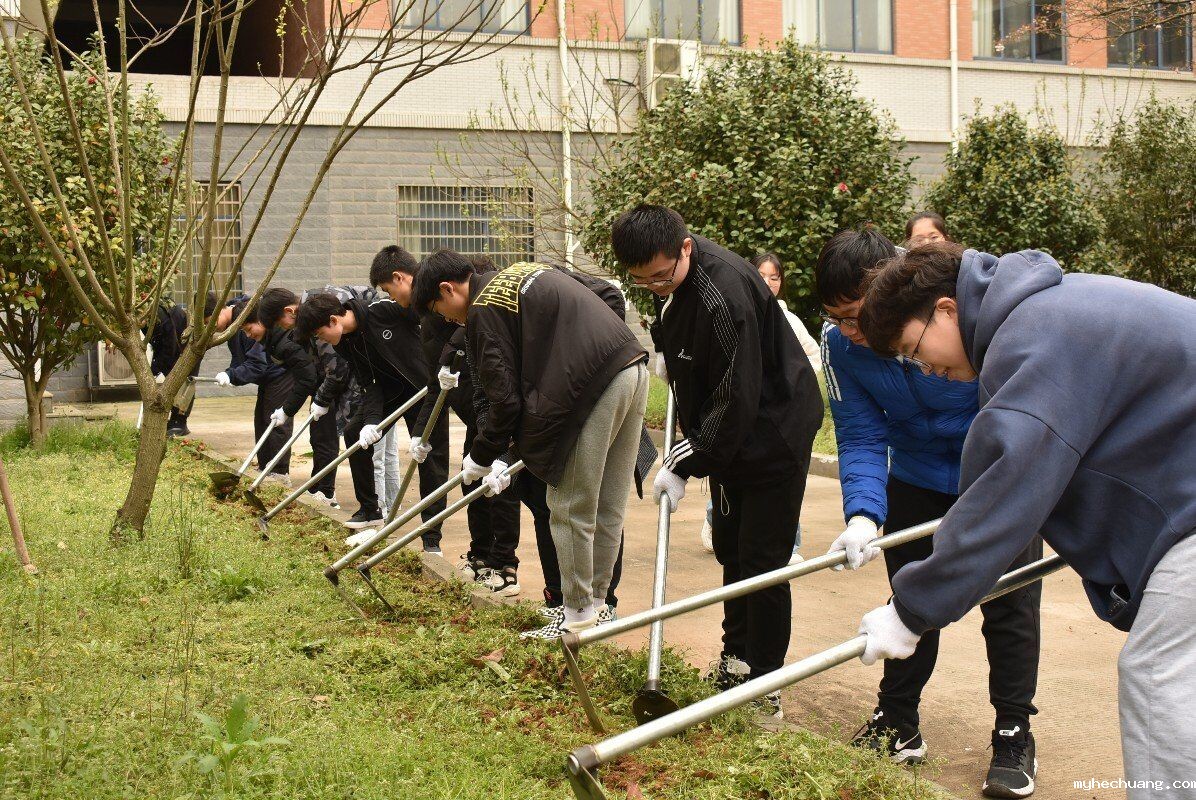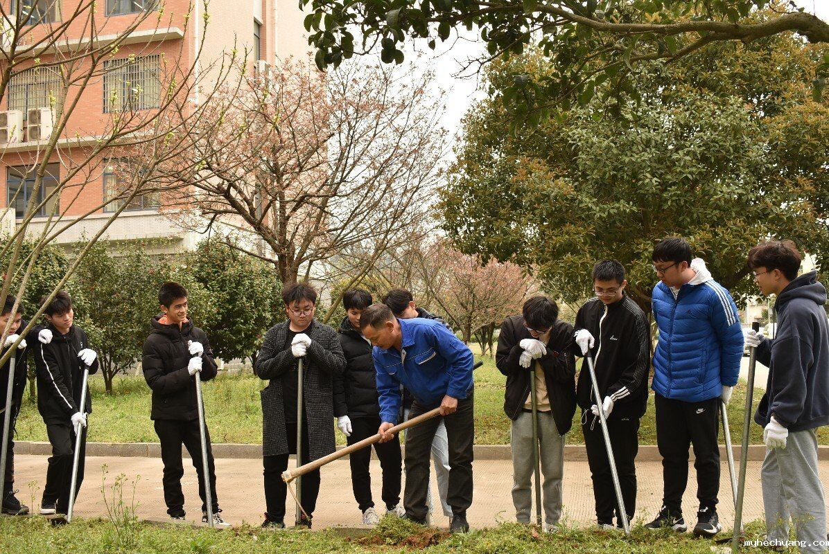 2021年3月23日下午14:30,在团总支部的带领下同学们开到办公楼前,拿着工具整装待发。