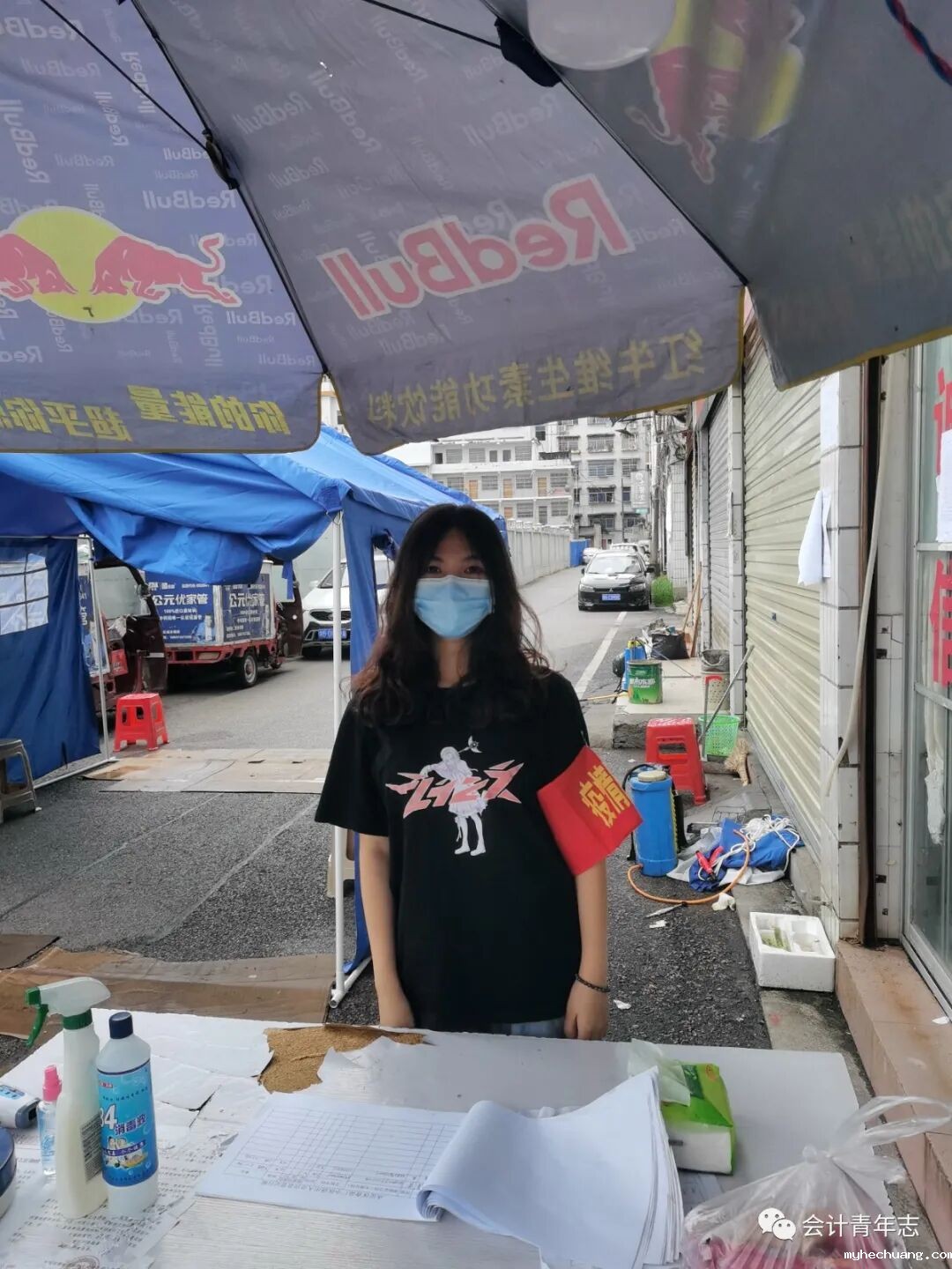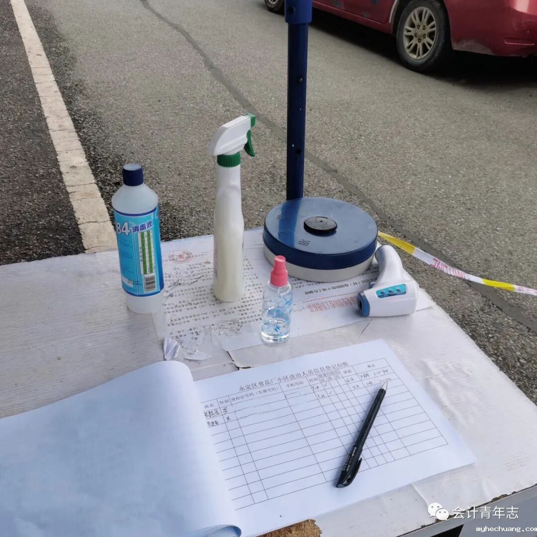 图为葛晓倩同学在食品厂小区卡点认真值班