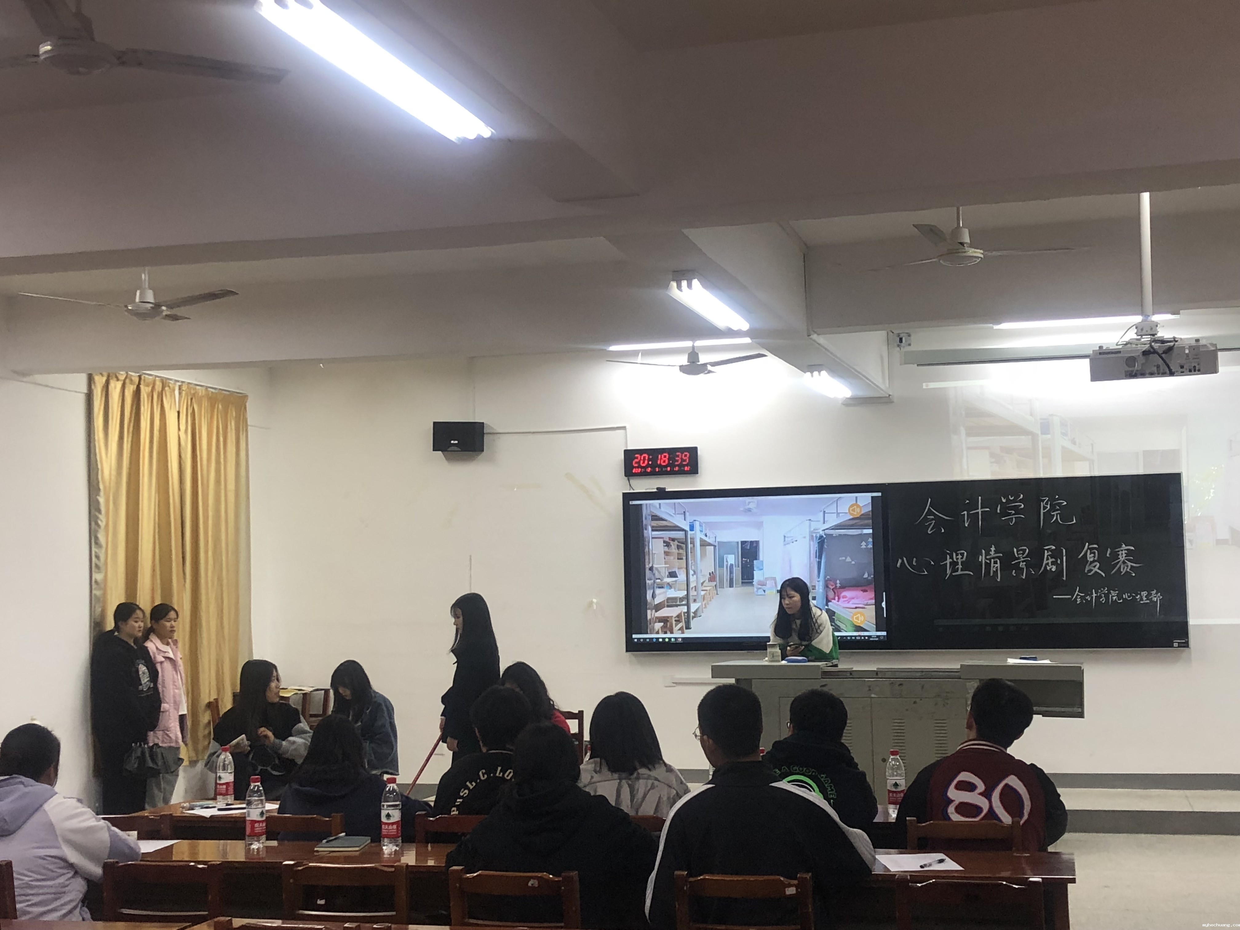 12月5日晚,由会计学院心理部举办的“温暖心灵,秀出自我”为主题的心理情景剧复赛在二教301和310举行,16支在初赛中脱颖而出的队伍参加复赛。会计学院团学分会各部门部长担任评委。