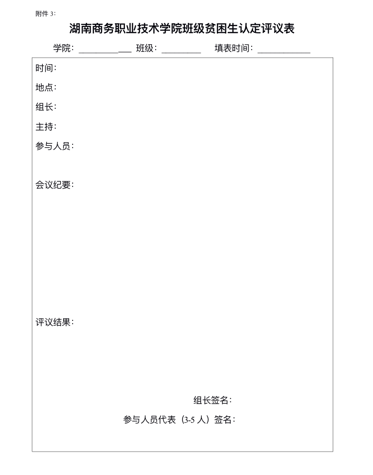 必威国际官网首页入口网站班级贫困生认定评议表
