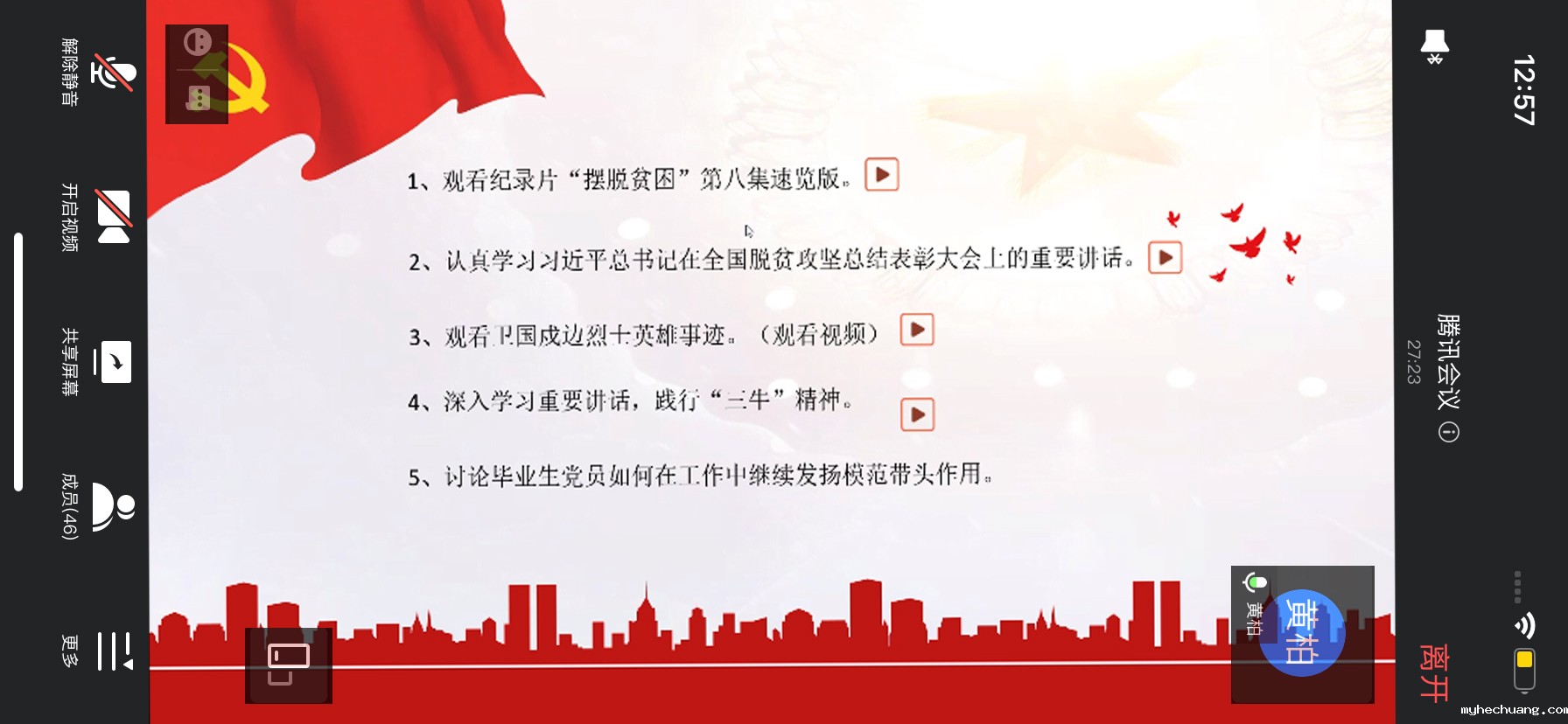 2021年3月4日,信息学院学工党支部通过线上会议开展主题党日,本次主体党日活动主题为“致敬脱贫攻坚楷模,弘扬卫国戍边烈士精神,2021犇向新征程”。信息学院学工党支部全体党员参加会议,会议主要分为组织学习和交流发言两部分。