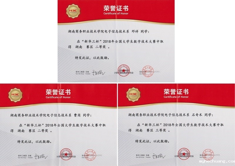 “大赛点燃校园,技术改变人生”。在长沙举办的2018年第八届“新华三杯”全国大学生数字技术大赛中,必威国际官网首页入口网站计算机网络技术专业16级学生邓祥等在苏命峰、谢林勇等老师指导下,奋勇拼搏、发挥出色,其中:邓祥、曹岗同学荣获二等奖,石奇术同学荣获三等奖。