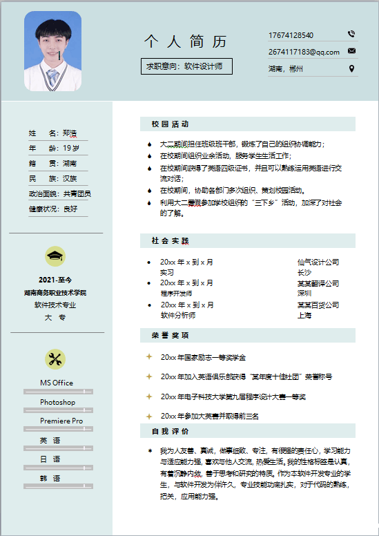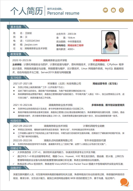 (本网讯 李博) 为了帮助广大学生更好地适应社会,增强就业意识,也为了提高我院学生的个人简历的整体质量,方便同学们更好的制定自己的人生目标和未来发展,提高同学们的总结能力、书面介绍能力、设计审美能力,帮助同学们增加勇气,为未来的求职面试打下基础。2022年6月17日,信息学院宿管部在线上举行了简历设计大赛。