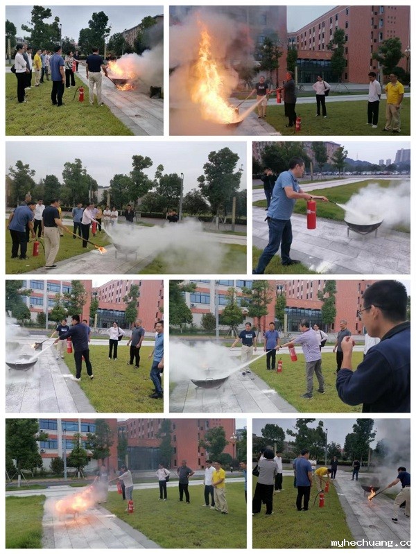 为了让大家学会真实火灾情境下的消防灭火器的使用,随后开展了灭火实战演练。