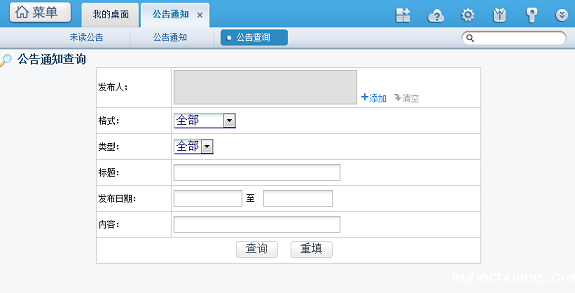 2)可以通过按照自己设置的条件进行公告通知的查询,如图所示: