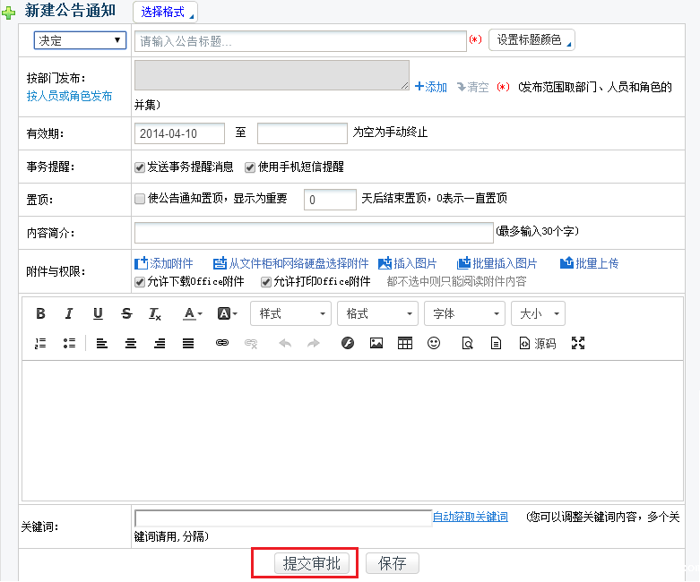 1)公告通知提供“普通格式”、“MHT格式”和超级链接三种格式的公告发布,MHT格式和超级链接无需输入,只要在附件区上传“.mht”格式的文件或输入网络链接即可。