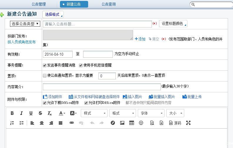 公告通知主要实现单位内部公共告示的作用,是单位内部不可缺少的信息发布与共享的功能。