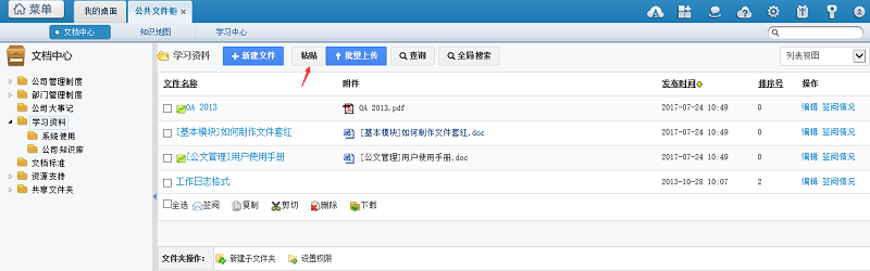 1.进入知识管理-公共文件柜,切换为列表视图。勾选需要转存的文件,点击剪切。