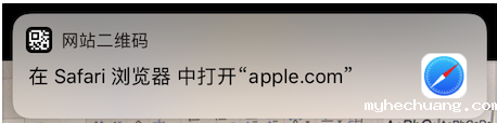 2. 扫描之后,选择在Safari浏览器中打开“apple.com”: