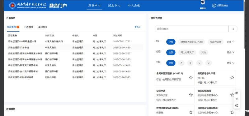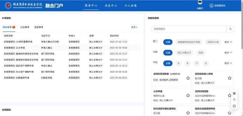 又分为常用微服务、全部微服务与收藏微服务是系统根据用户使用情况进行分类展示的,用户可以快速找到自己需要办理的服务。