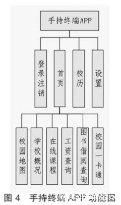 手持终端APP(以下简称APP端)主要包含登录/注销、首页、校历、设置四个功能,如图4所示。