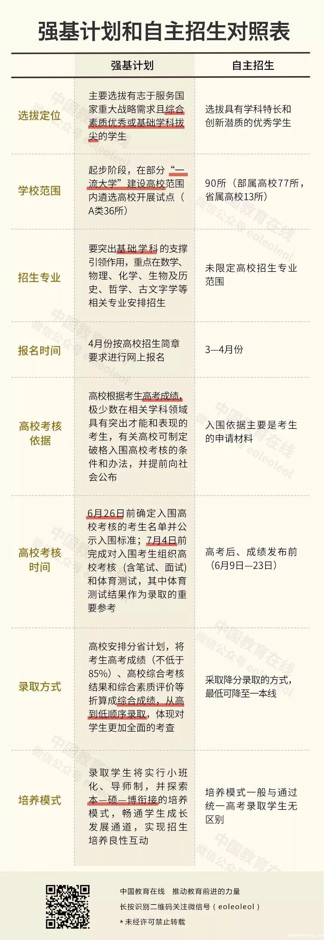 二、与自主招生相比,强基计划更重视高考成绩与学科水平的潜力评价。各高校具体的招生政策即将出台,一切应以高校的信息为准。