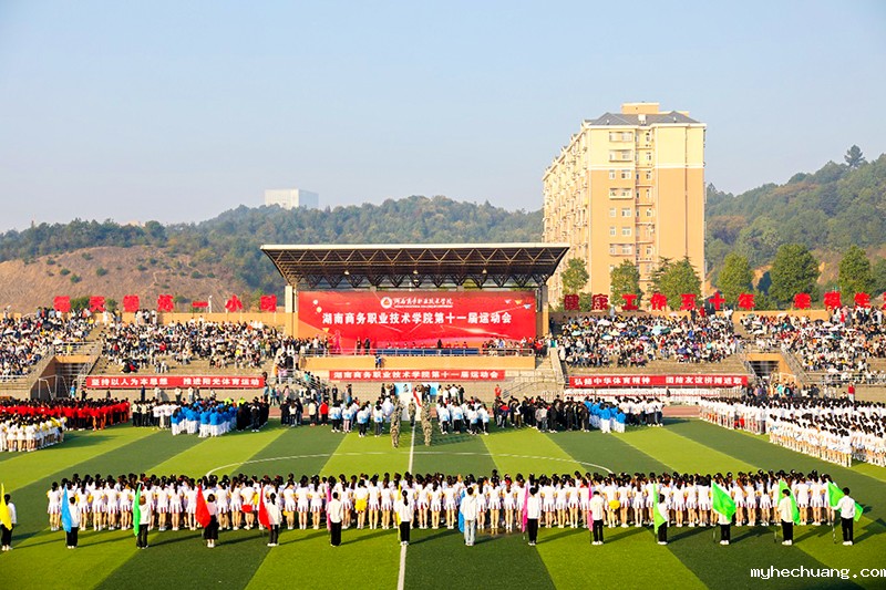 “湖南商务技术职业学院第十一届校运会正式开幕!”党委书记周忠新迎着朝阳庄重宣布。