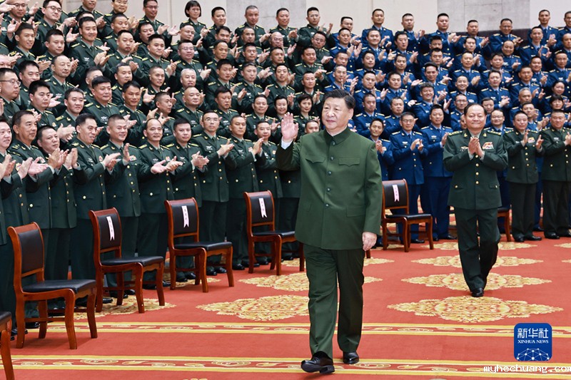 12月14日至15日,中共中央总书记、国家主席、中央军委主席习近平在广西考察。这是15日上午,习近平在南宁亲切接见驻南宁部队上校以上领导干部,代表党中央和中央军委向驻南宁部队全体官兵致以诚挚问候。(新华社记者 李刚/摄)