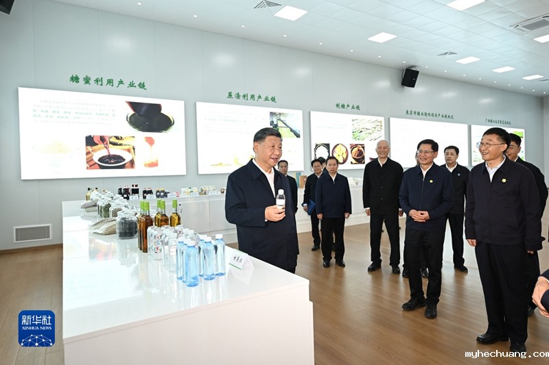 随后,习近平到来宾东糖凤凰有限公司考察。他进入生产车间察看制糖工艺和作业流程,在公司展厅了解糖业产品种类及市场份额和发展趋势。他强调,我国糖业面临激烈的国际竞争,要按照高端化、智能化、绿色化要求,加大科技创新力度,延伸产业链、提高附加值,不断提质、降本、增效,推动高质量发展。离开企业时,习近平热情地对前来欢送的员工们说,食糖是重要的副食品,大家为此辛勤劳动,为千家万户送去了“甜蜜”。希望大家不断学习新技术、采用新工艺,为糖业发展作出新贡献。
