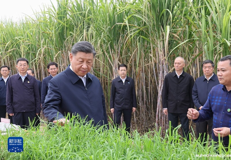 14日下午,习近平到来宾市考察调研。在国家现代农业产业园黄安优质“双高”糖料蔗基地,习近平察看万亩甘蔗林和机械化作业收割场景,听取基地情况介绍。他走进甘蔗林,详细了解甘蔗良种繁育技术要领,同蔗农、农机手和农技人员亲切交流。习近平指出,广西是我国蔗糖主产区,要把这一特色优势产业做强做大,为保障国家糖业安全、促进蔗农增收致富发挥更大作用。要积极培育和推广良种、提高机械化作业水平,建设好现代农业产业园。要探索建立更加稳定的利益联结机制,让广大农民共享农村改革和发展成果。他祝愿乡亲们的生活像甘蔗一样甜蜜。