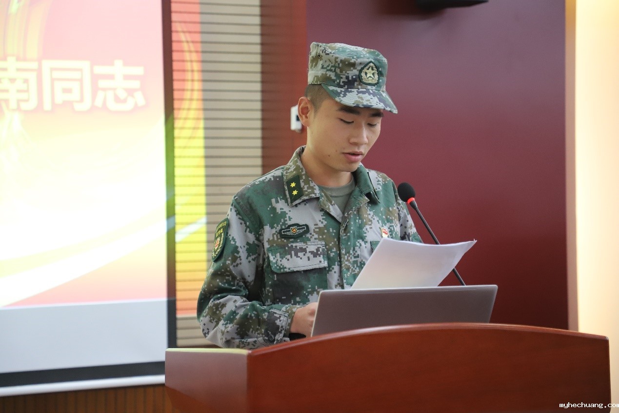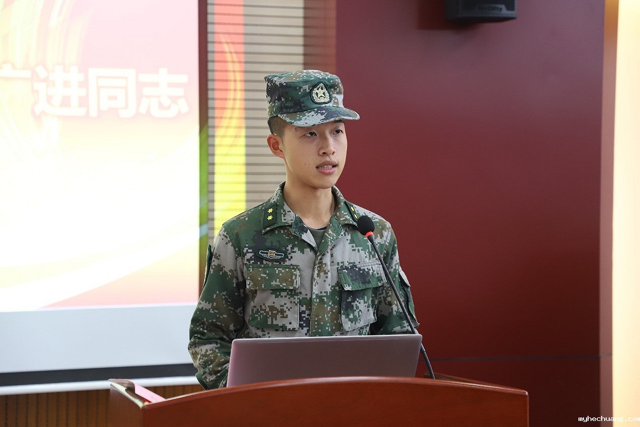 第五届学生教官队大队长傅广进同志发言。他在发言中向第五届成员提出三个要求:第一、以身作则;第二、严格要求自己,训练过硬本领;第三、加强学习,在工作和生活中发挥表率作用。