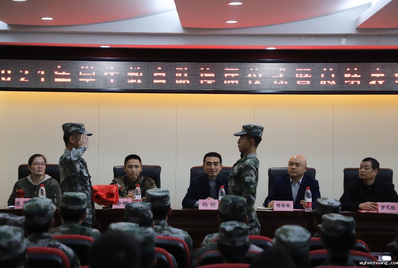 本站讯(通讯员:伍柯) 12月7日晚,我院2021年学生教官队换届仪式暨总结表彰大会在办公楼学术报告厅隆重举行。学工处处长杨明,副处长杨秀军、陈慧军,武装部罗永红老师,长沙南国利剑国防教育基地参谋长金辉、团长王政华出席本次会议。第四、五届学生教官队全体队员参加本次会议。