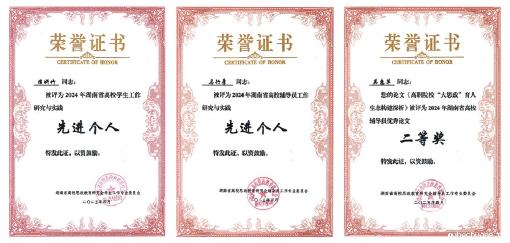 马行厚老师获评2024年辅导员工作研究与实践先进个人,侯妍竹老师获评2024年必威国际登陆平台app下载安装研究与实践先进个人,吴惠萍老师论文《高职院校“大思政”育人生态构建探析》获2024年辅导员优秀论文二等奖。