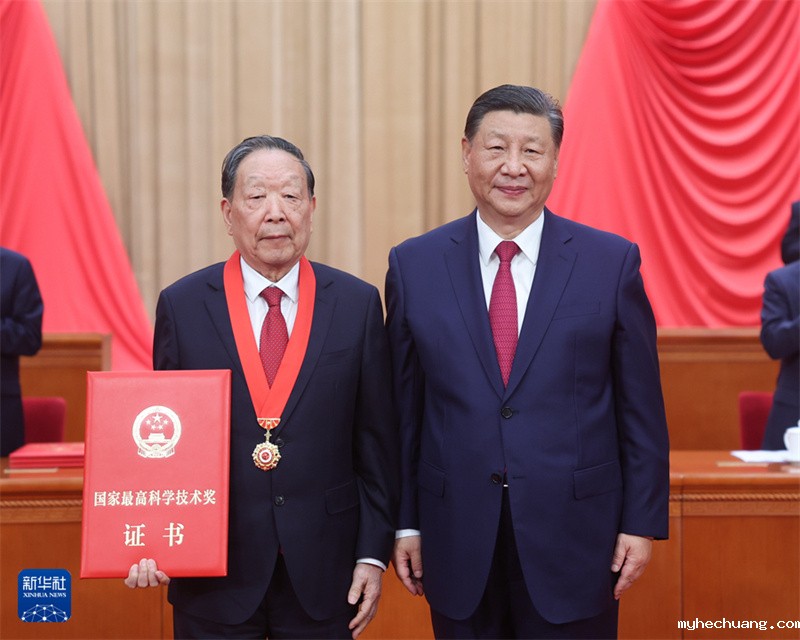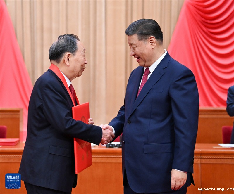 6月24日,全国科技大会、国家科学技术奖励大会和中国科学院第二十一次院士大会、中国工程院第十七次院士大会在北京人民大会堂隆重召开。中共中央总书记、国家主席、中央军委主席习近平向获得2023年度国家最高科学技术奖的武汉大学李德仁院士颁奖。(新华社记者 鞠鹏/摄)