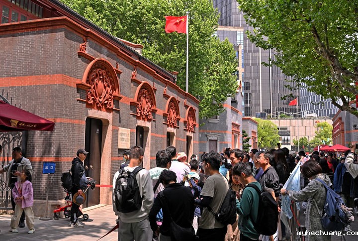 2024年5月3日,游客在位于上海的中共一大会址前参观。(新华社记者 刘颖/摄)