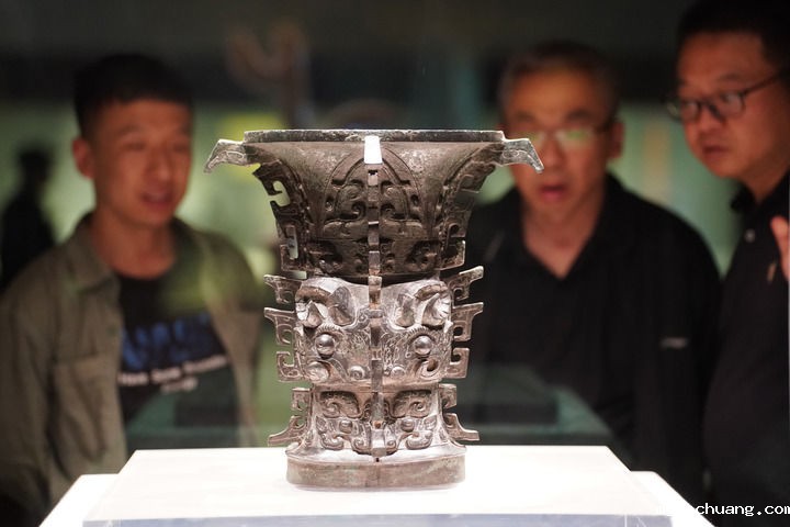 2024年5月9日,游客在陕西宝鸡青铜器博物院内参观西周文物何尊。(新华社记者 邵瑞/摄)