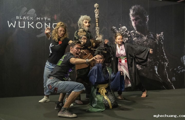2024年8月22日,人们在德国2024年科隆国际游戏展《黑神话:悟空》拍照区拍照。(新华社记者 张帆/摄)